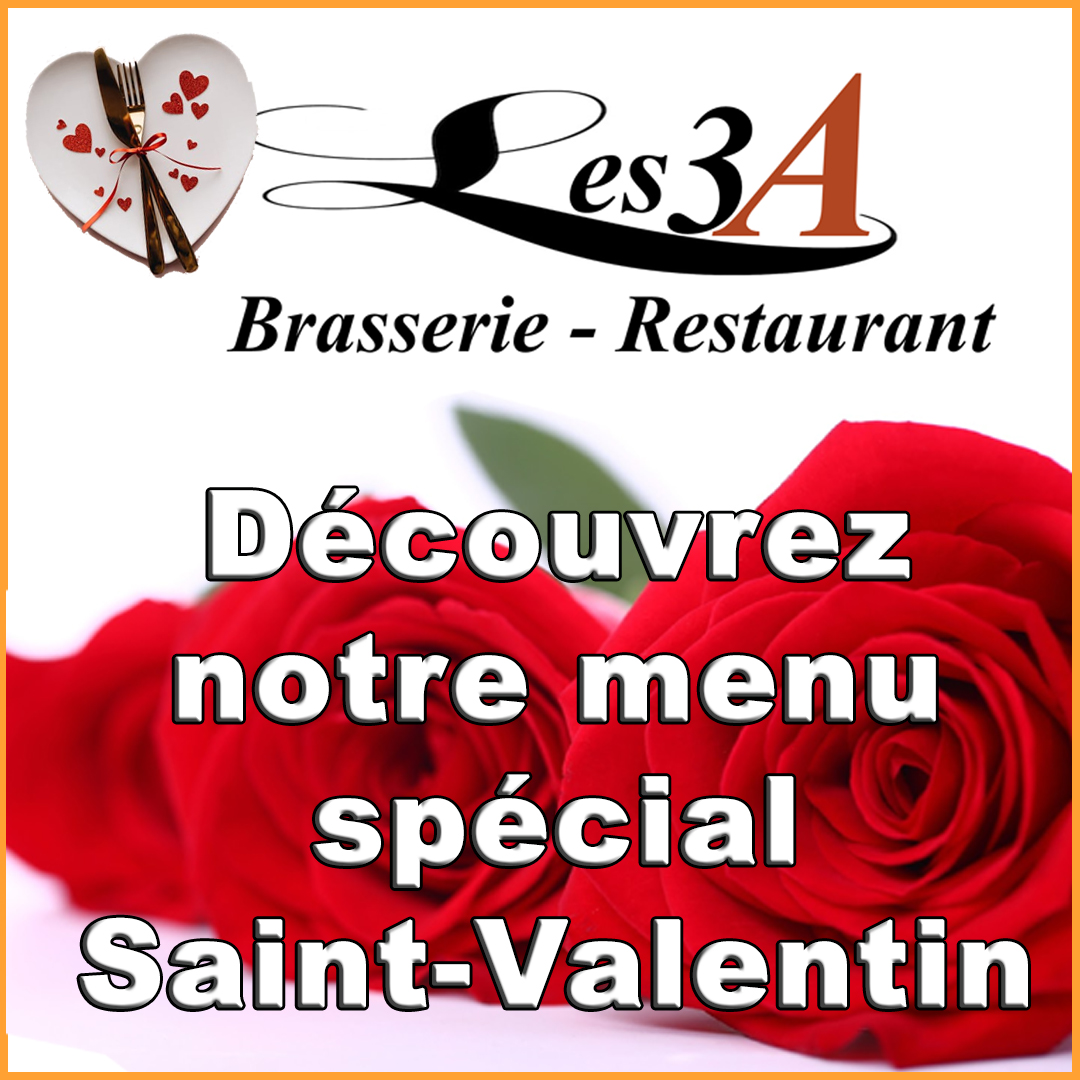 La brasserie les 3A vous propose un menu spécial Saint-Valentin, à découvrir le samedi 14 midi et soir ainsi que le dimanche 15 midi. lelienlocal.fr/wp-content/uploads/2026/02/saint-valentin-3A-3.pdf
