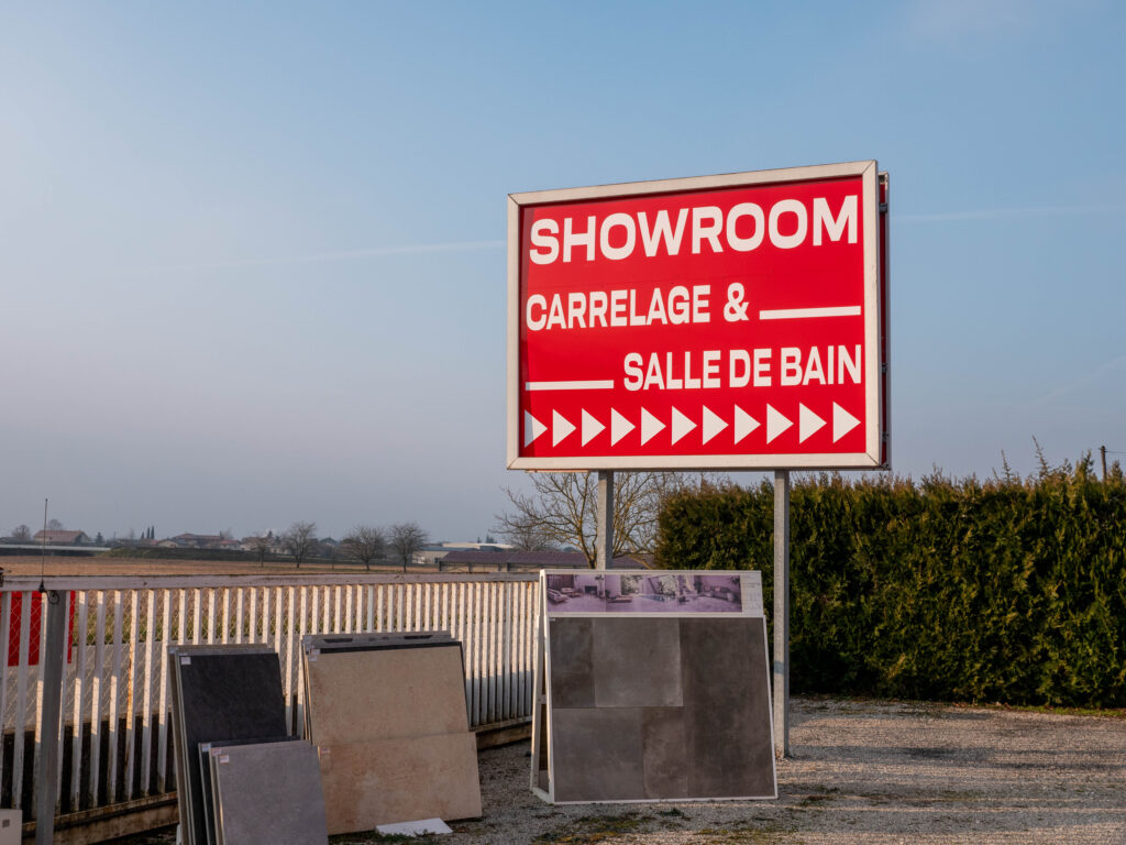 Carrelage direct usine, chape liquide et pose professionnelle. Showroom de 150 m².